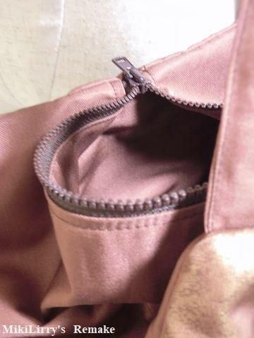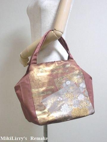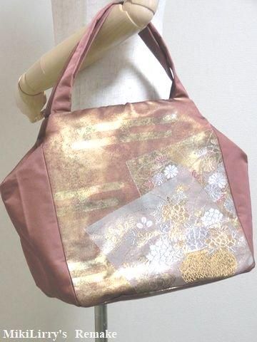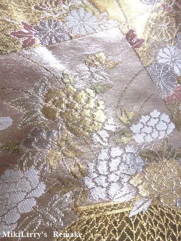 帯リメイク✿梅鼠色に蒔絵金彩錦の名古屋帯からおつくりした縦ファスナーバッグ
