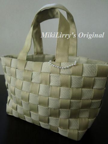 オリジナル✿ゴールド×ラメの編み込みトートバッグ小(パールつき)