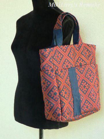 帯リメイク✿織りの名古屋帯に横菱文様のトートバッグ