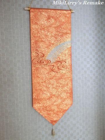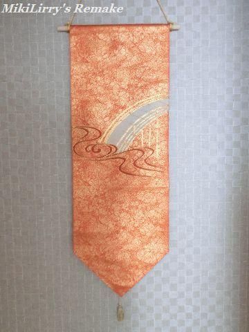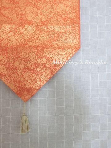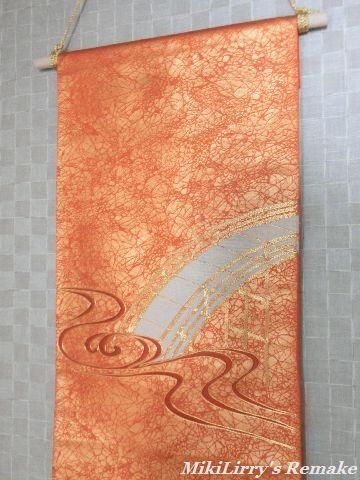 帯リメイク✿オレンジ色に橋のはいった文様の名古屋帯タペストリー